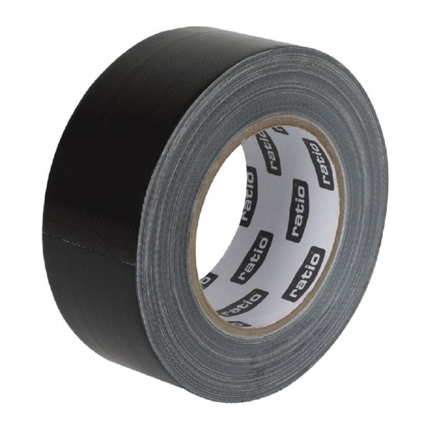 Base de malla textil con recubrimiento de polietileno. Adhesivo de caucho de gran adherencia. Negra 30 m x 50 mm.