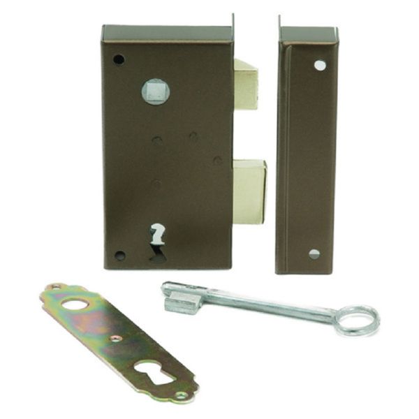 Palanca y picaporte, cañón y 1 llave de gorja. Hierro esmaltado alta resistencia. Cilindro redondo. Entrada 35 mm. Izquierda 61 mm.