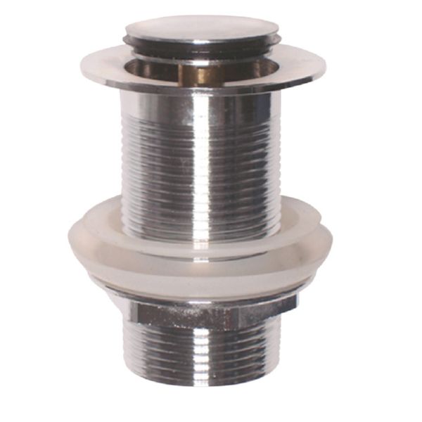 Lavabo/bidé. Tapón tipo Clic-Clac. Tapón accionado por pulsador. Cromado. 1 1/4" con rebosadero.