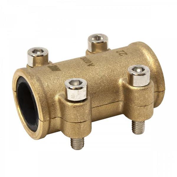 Abrazadera tapaporos para tubería de cobre, galvanizada e inox. Cuerpo reforzado fabricado en latón. Soporta una presión nominal de 16 bar y admite una temperatura de trabajo de entre -20ºC y 120ºC. Permite reparar fugas sin necesidad de hacer soldaduras ni cortar el tubo. ø 18 mm.