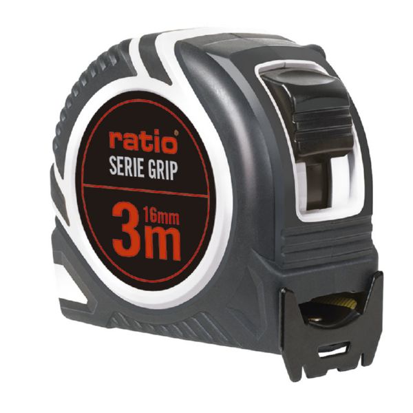 Carcasa ABS con recubrimiento antideslizante. Cinta numeración doble cara (amarilla/blanca) con revestimiento nilón antireflex. Gancho metálico doble reforzado y botón de bloqueo. Clip para cinturón y correa de mano. Homologado CE, clase de Precisión 3 metros. Cinta 16 mm.