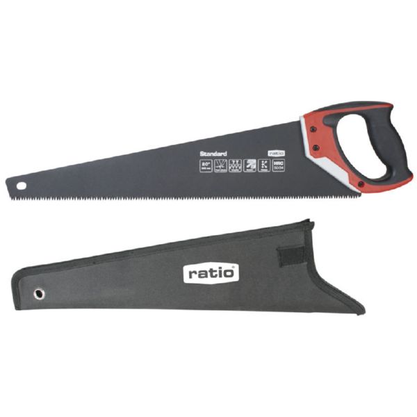 Dentado triple afilado 7 TPI (dientes por pulgada). Hoja de acero teflonado especial 65 Mn. Mango ergonómico bimaterial. Funda protectora de nylon y protector magnético de filo. 500 mm.