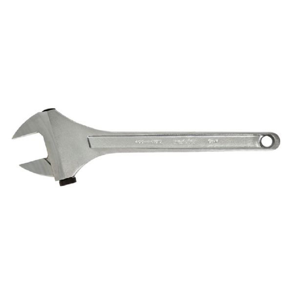Acero cromo-vanadio cromado y bocas pulidas. Mangos y mandíbula forjados en caliente con tratamiento térmico en toda la pieza. Cabeza con ángulo 15º que permite su uso en espacios reducidos. Escala milimetrada. 16"-400 mm.