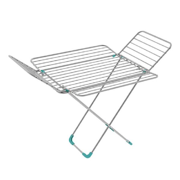 Rejilla aluminio anodizado y patas en acero pintado anti-óxido. Ligero y robusto. Desplegado: 169x100xh.113 cm. Plegado: 54x6xh.130 cm. Tendido 30 m.
