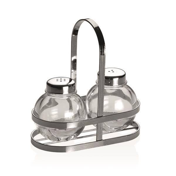 Set salero-pimentero en vidrio con base metálica. Capacidad 78ml. Caja litrografiada. Capacidad 78 ml.