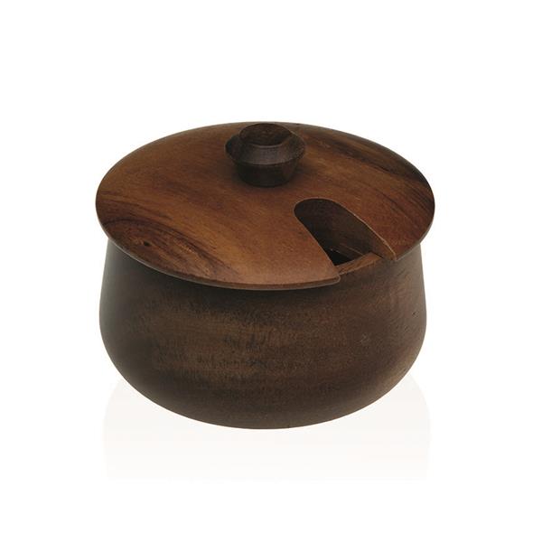 Bote en cristal borosilicato y tapa y cuchara en madera de acacia. Capacidad 470ml.