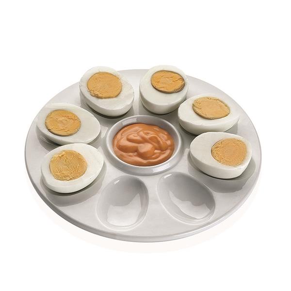 Fuente para huevos en porcelana, capacidad 8 huevos. 20x20x2.2. Ø 20 cm.