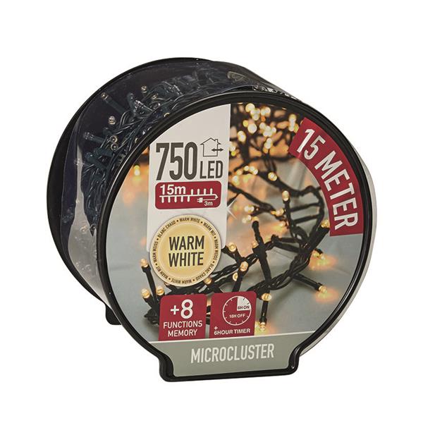 Microcluster luz blanca calida. 750 leds. 15 m. Para arboles 180 cm.