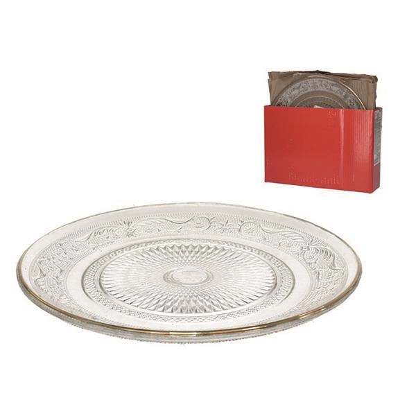 Fabricada en vidrio grabado, con delicado filo dorado que su diseño la convierte en una pieza decorativa para la mesa. Fácil de limpiar y mantener, aporta un toque sofisticado a cualquier mesa. Está disponible en diferentes medidas. 25x2,5 cm.