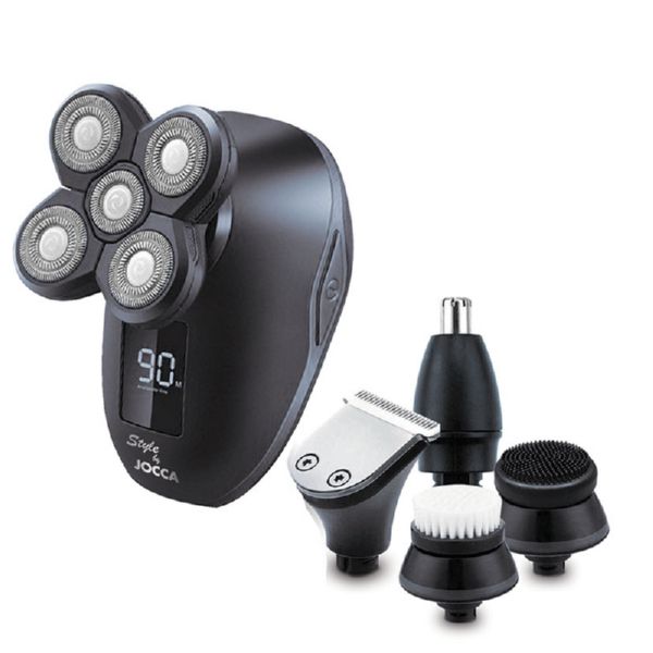 Está equipado por cabezal de afeitado 5D con cuchillas de acero inoxidable, dispone de distintos cabezales para poder recortar también vello de la nariz y orejas sin tirones.