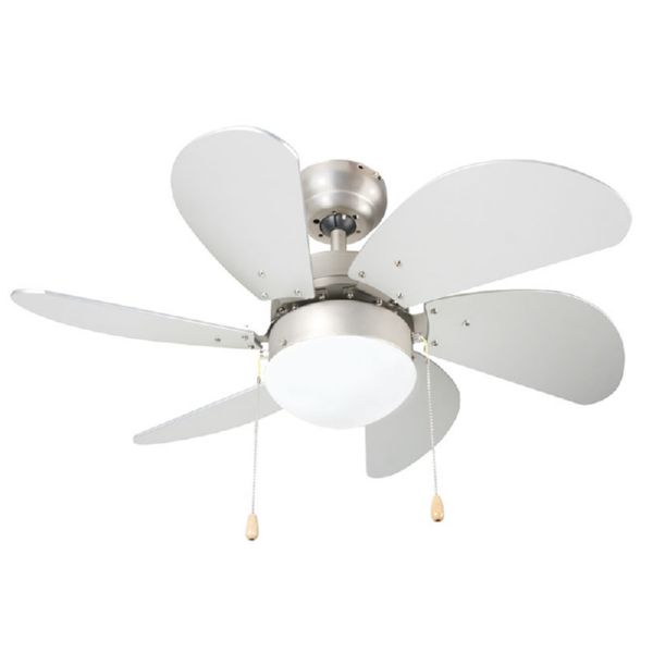 El ventilador HABITEX VTR de 50W de potencia está compuesto por 6 hélices bicolor y reversibles en madera/gris metalizado, innovadoras y aerodinámicas, diseñadas para garantizar un caudal constante de aire fresco. Incluye 3 velocidades de funcionamiento para que puedas adaptarlo según necesites. Posee un doble sentido de giro de las aspas en verano/invierno. Incorpora una luz regulable que funciona con una lámpara E27 de 60W (no incluida) e incluye un mando a distancia (2 pilas AAA no incluidas) para que lo puedas manejar cómodamente. Viene presentado en caja y tiene 3 años de garantía.