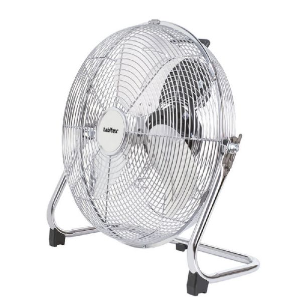 Este ventilador posee un cabezal inclinable, una base muy estable y antideslizante. Las hélices están fabricadas en metal y dispone de un asa de transporte para que puedas transportarlo fácilmente. Su potencia de 120W aporta un caudal de aire de 97,54 m3/min. Viene presentado en caja y tiene 3 años de garantía.