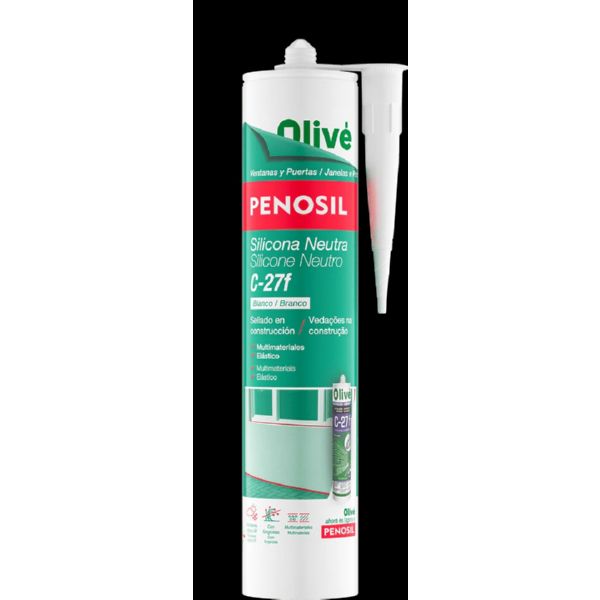 • PENOSIL Silicona neutra C-27f es un sellante de silicona, de curado neutro y de bajo módulo, que reacciona con la humedad atmosférica produciendo una goma flexible extremadamente resistente.